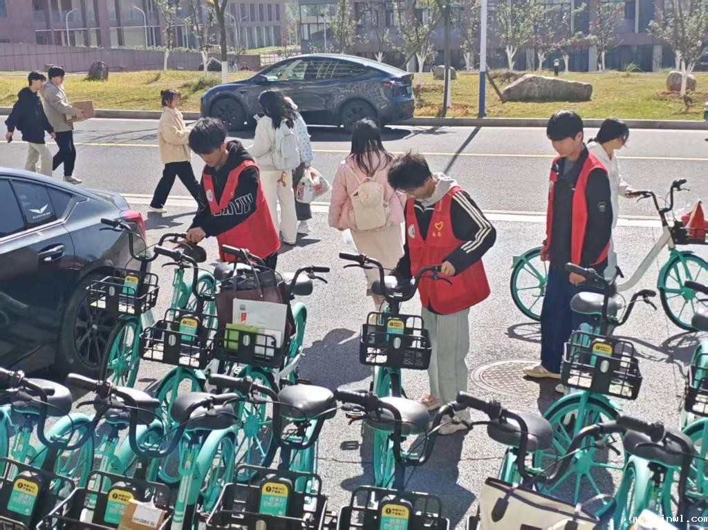 26日中午,志愿者来到学校各处共享单车停放点,将停放不规范的单车逐一搬运至指定停放区域,并按照“车头同向、整齐排列”的标准摆放整齐。活动中,志愿者主动帮助需要帮助的同学,遇到有同学使用单车时,志愿者们主动上前,耐心讲解规范停放的重要性,引导其将单车停放到正确位置。